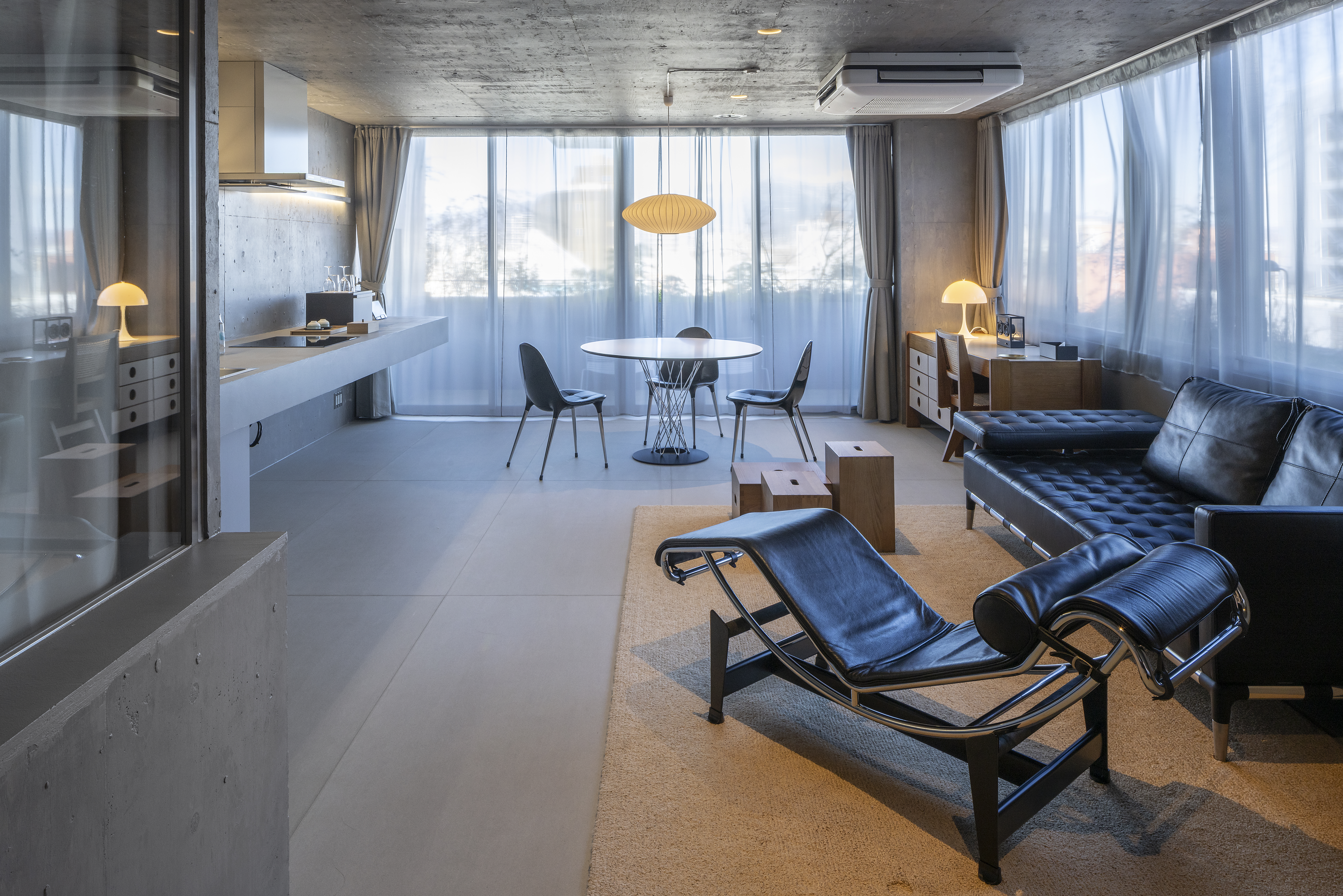 Once a historic ryokan in Maebashi with over 300 years of tradition, the property has been reborn as Shiroiya Hotel—a striking and innovative space where heritage and contemporary design come together. Centered around a bold exposed-concrete atrium illuminated by a light installation from a world-renowned artist, the hotel has been carefully reimagined, with each guest room offering a distinctive concept and atmosphere.