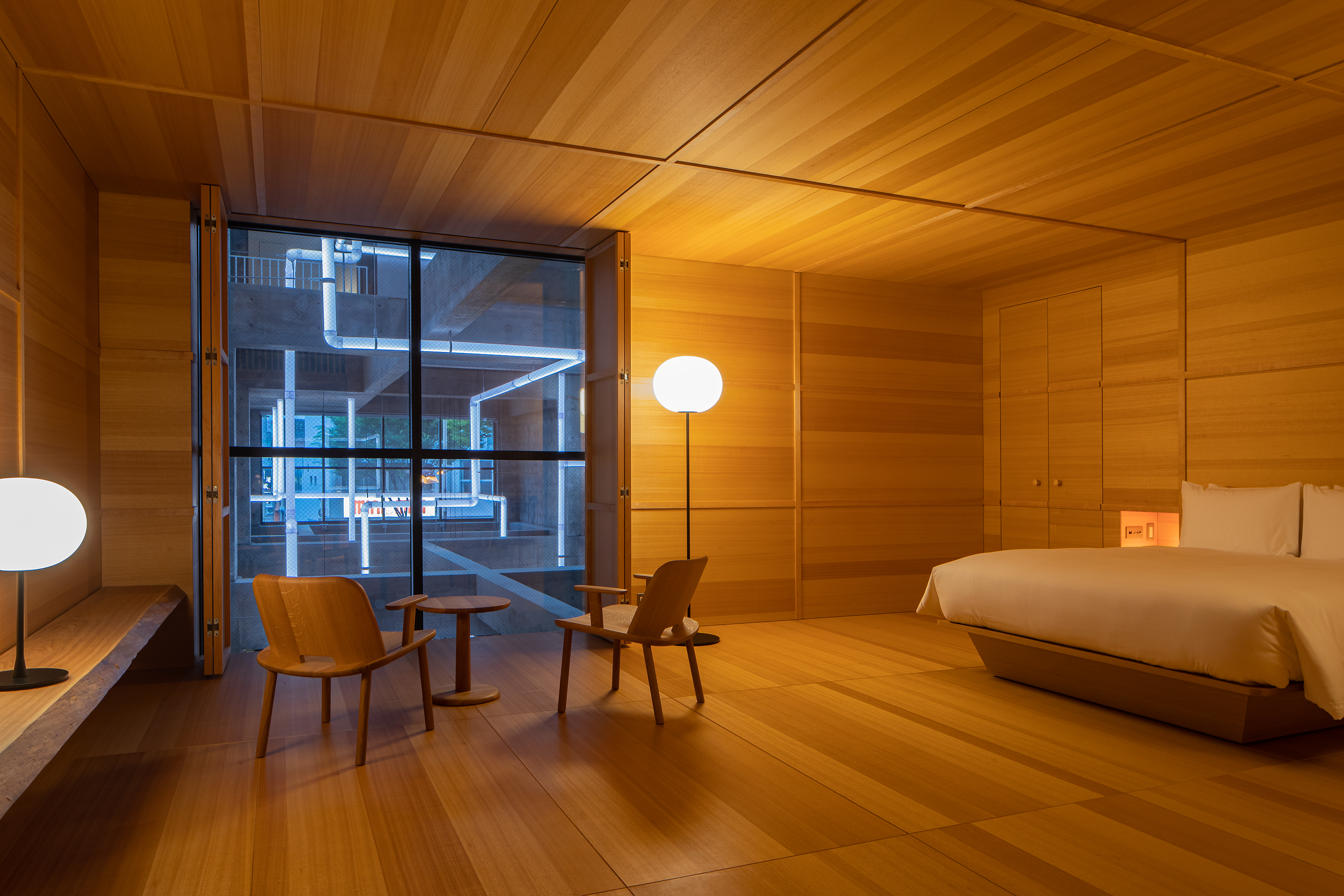 The hotel features 28 uniquely designed guest rooms created by leading global creators, including a special room designed by renowned architect Sou Fujimoto. Staying here feels like residing in a private gallery, offering guests a truly immersive artistic experience. In addition, a hidden speakeasy-style bar designed by acclaimed artist Hiroshi Sugimoto and architect Tomoyuki Sakakida provides an intimate and refined atmosphere.