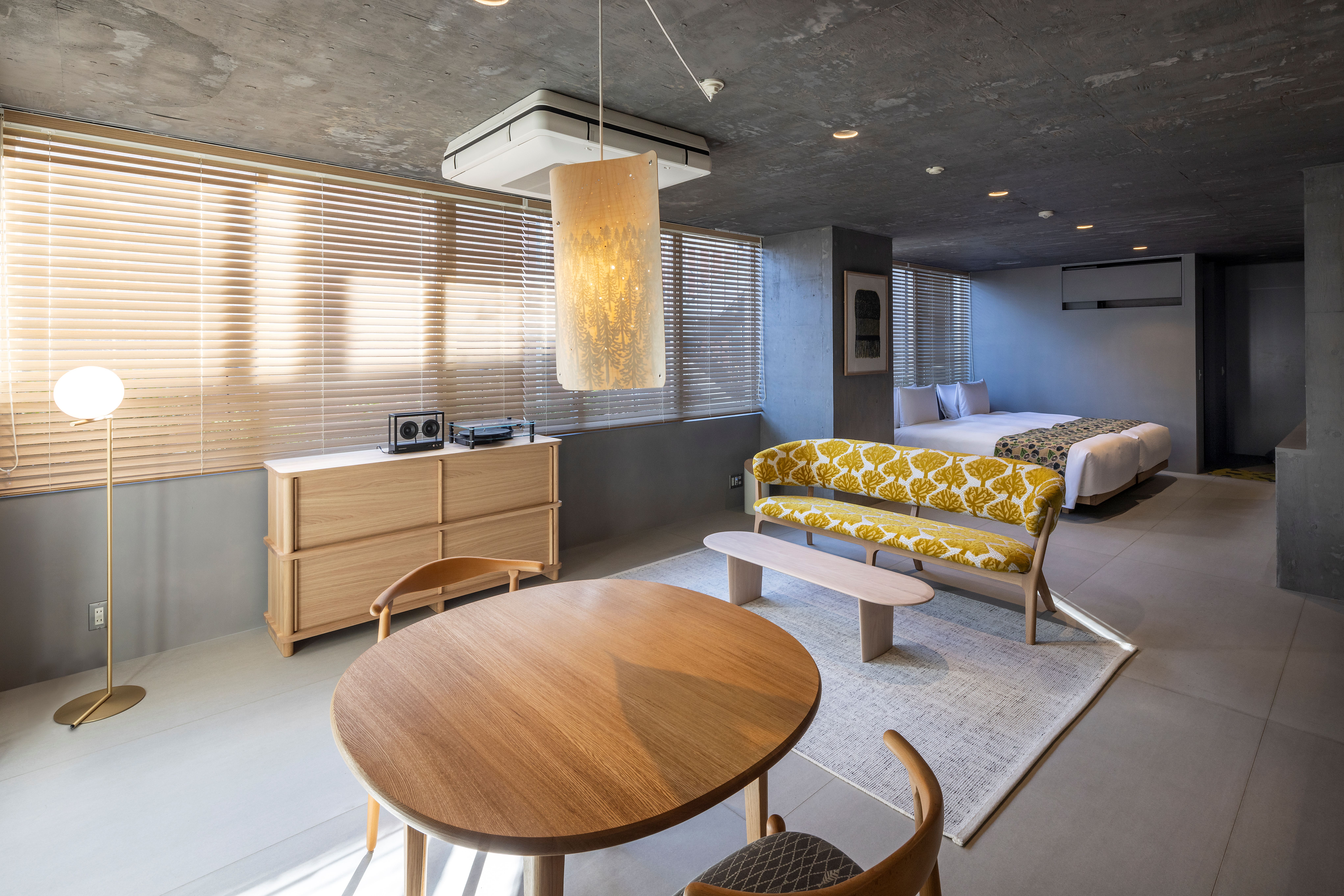 Enjoy original works by British artist Ryan Gander and plush, comfortable furnishings that contrast with the raw concrete finishes from the old Shiroiya Hotel of the 1970s.